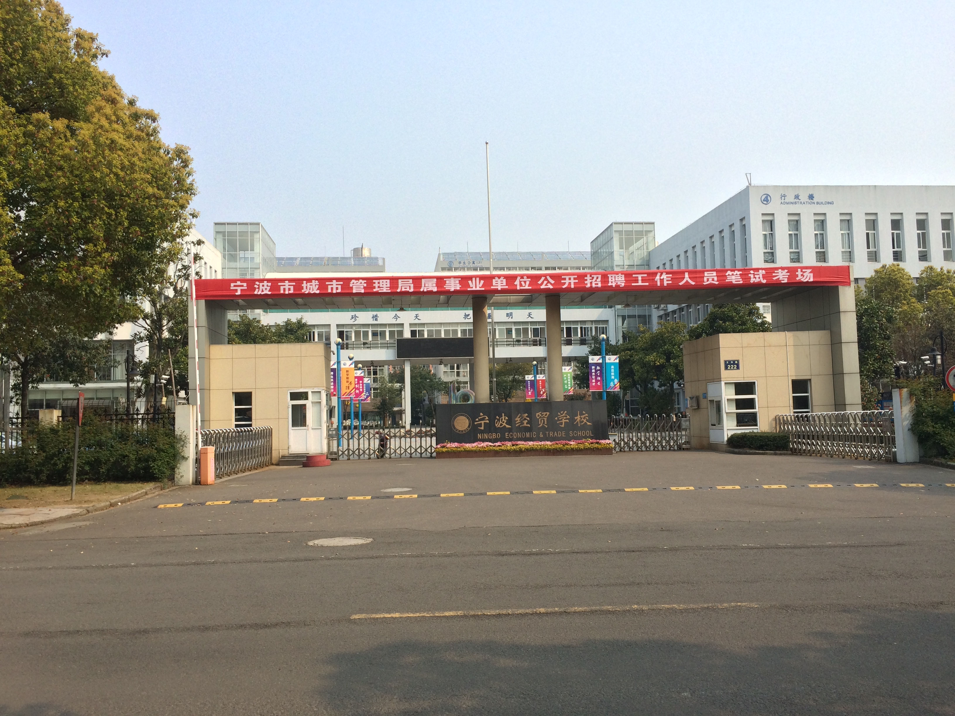 寧波經(jīng)貿(mào)學校(寧波市第九中學)創(chuàng)辦于1956年,職業(yè)教育始辦于1984年,2006年被評為浙江省一級重點職高,2008年2月成為國家級重點職業(yè)學校。2006年9月,學校完成整體搬遷,全新校舍位于高教園區(qū)南區(qū),按國家級全寄宿制重點職業(yè)學校標準建設(shè),占地121畝,建筑面積5萬5千余平方米,其中實訓大樓建筑面積15000余平方米,建成學校所設(shè)專業(yè)配套實驗實訓室50余個,實現(xiàn)了教學硬件配置現(xiàn)代化、規(guī)格化,盡享高教園區(qū)的文化資源和育人氛圍。學校著力打造本市首家開放式現(xiàn)代服務業(yè)實訓基地,充分發(fā)揮基地的教育實訓功能、培訓功能和職業(yè)資格鑒定功能。