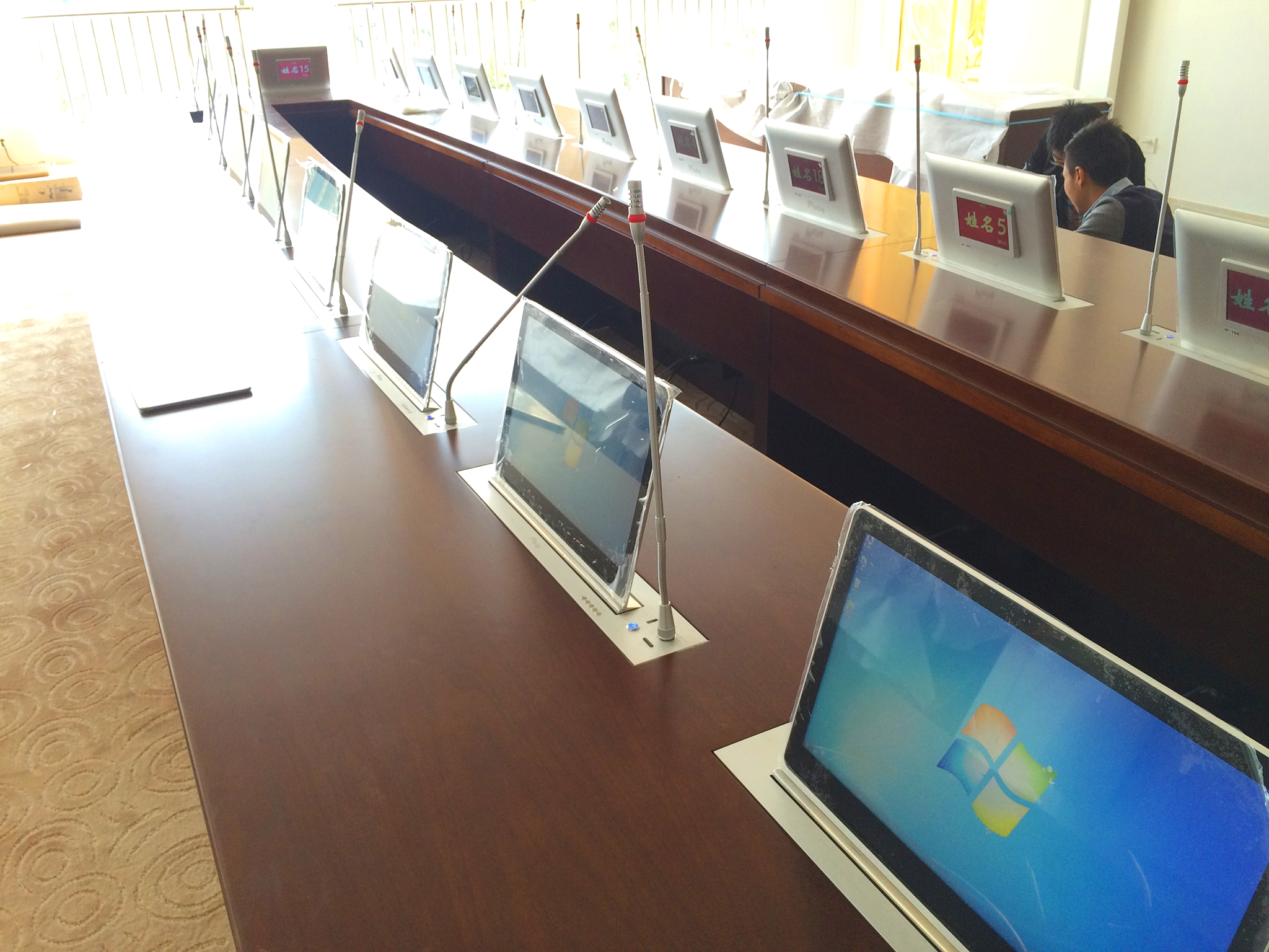 寧波經(jīng)貿(mào)學校會議室,對于事件的應急討論決策急需一個性能穩(wěn)定、音質(zhì)清晰、操作簡單的會議系統(tǒng)。對此,京邦電子(KING-BANG)為其提供了高智能會議系M-806A和M-807A系列,DPLL數(shù)字鎖相環(huán)多信道頻率合成技術(shù),會議聲音清晰通透。音質(zhì)清晰,通過專業(yè)功放和反饋抑制器,音響處理器等眾多設(shè)備,配合調(diào)音臺,實現(xiàn)對所有會議功能進行集中控制。