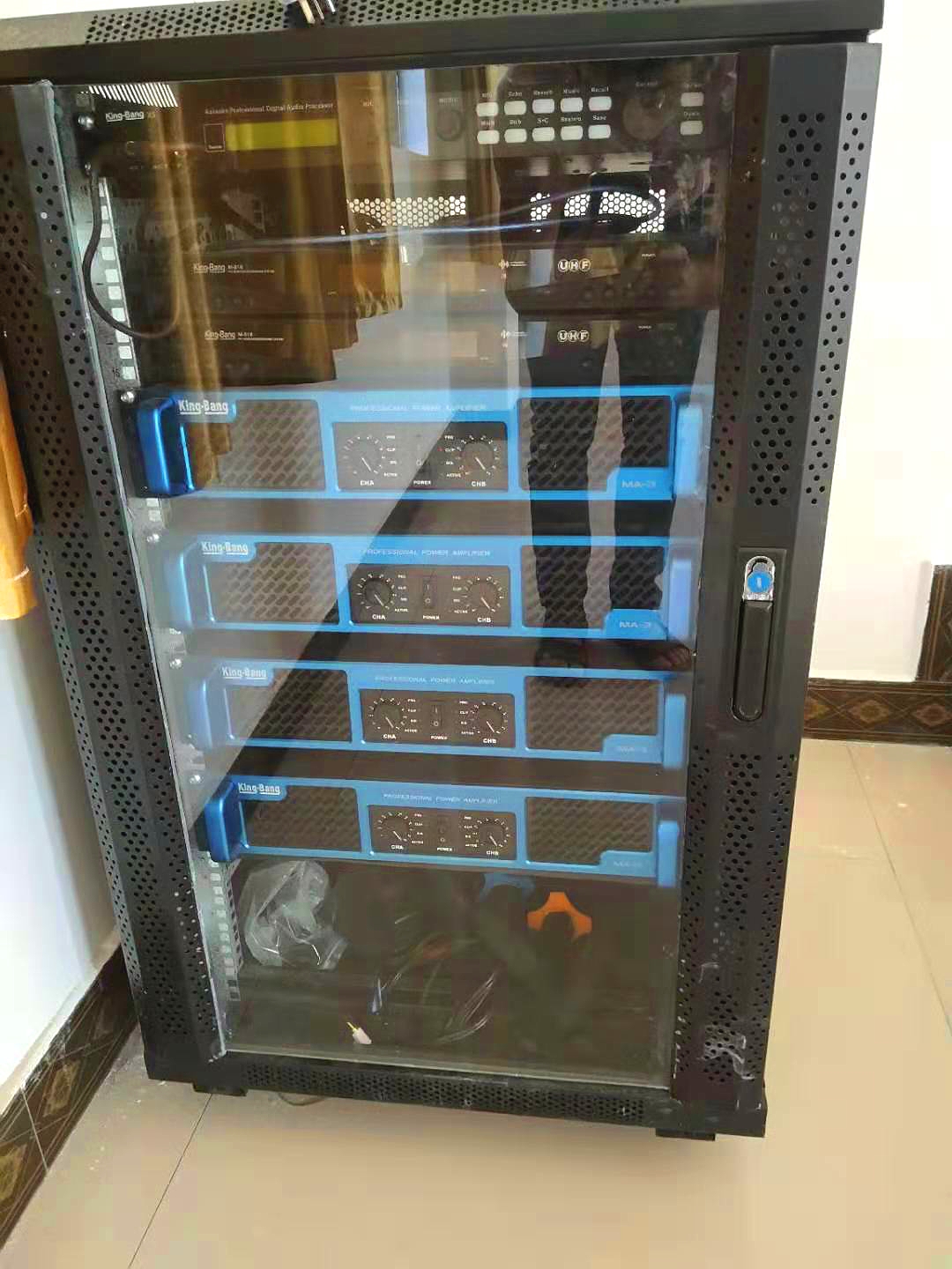 系統中配置MA系列專業功放,采用高檔鋁合材料精心加工而成,機器內部局部采用SMT技術。系統配置的UHF無線話筒具有回輸嘯叫抑制減弱功能,能有效減少回輸嘯叫,講話聲音清晰;