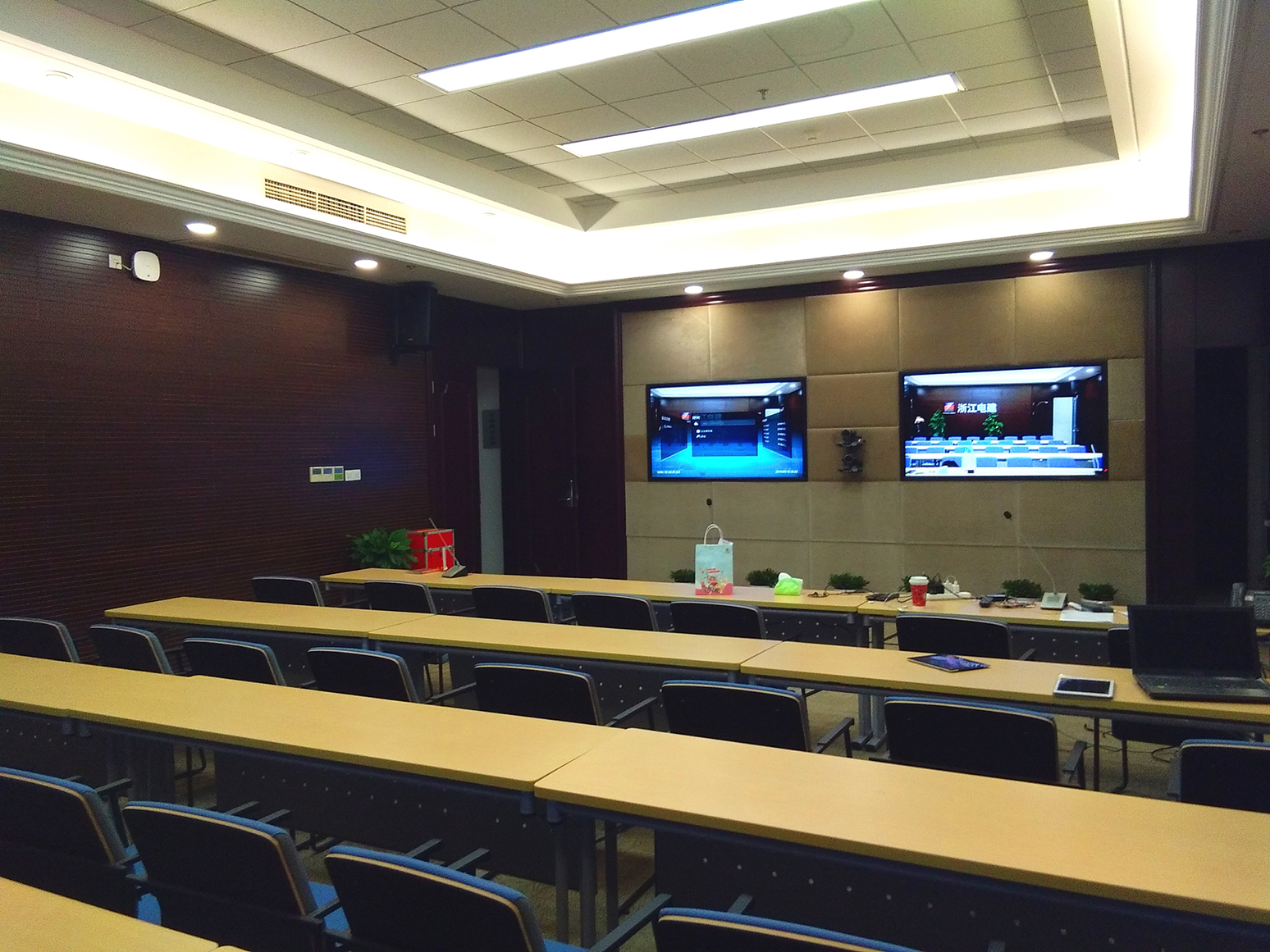 會議系統(tǒng)主要由揚聲器、功率放大器、音頻處理設(shè)備、調(diào)音臺、話筒、音源等設(shè)備組成。整個系統(tǒng)選用同類產(chǎn)品中音色優(yōu)美的高檔次音響器材組成音響系統(tǒng)。