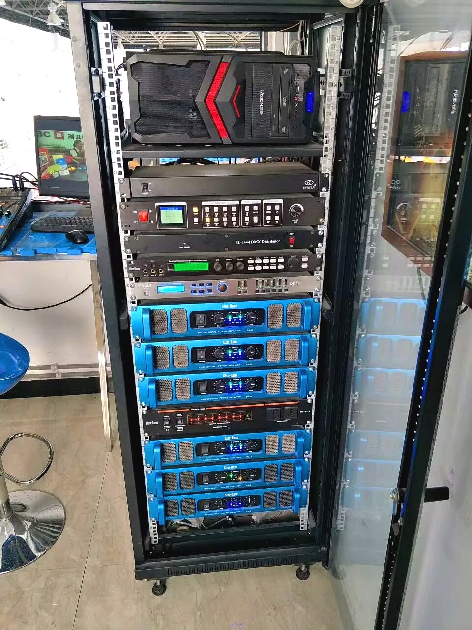 結(jié)合該體育館擴(kuò)聲場(chǎng)所的實(shí)際擴(kuò)聲需求和功能,設(shè)計(jì)應(yīng)用了京邦電子(KING-BANG)的品牌,KB-15兩分頻單15"全頻箱作為主擴(kuò)聲系統(tǒng),F(xiàn)-18單18"超重低音炮為整場(chǎng)提供良好的低頻沖擊力和量感,同時(shí)應(yīng)用了京邦電子(KING-BANG)的全套周邊擴(kuò)聲系統(tǒng)產(chǎn)品。其聲場(chǎng)覆蓋根據(jù)實(shí)際布局進(jìn)行優(yōu)化,從而實(shí)現(xiàn)了聲場(chǎng)均勻、高語(yǔ)音清晰度和大動(dòng)態(tài)的聲場(chǎng)。